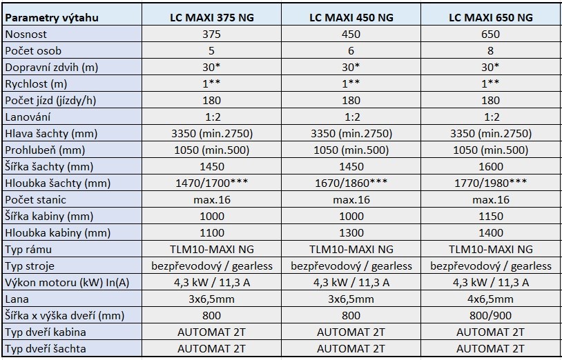 1, Cabin width increased by 50 mm to 1150 mm – while maintaining the same shaft dimensions of 1600 × 1770 mm (for LC Maxi 650 NG)