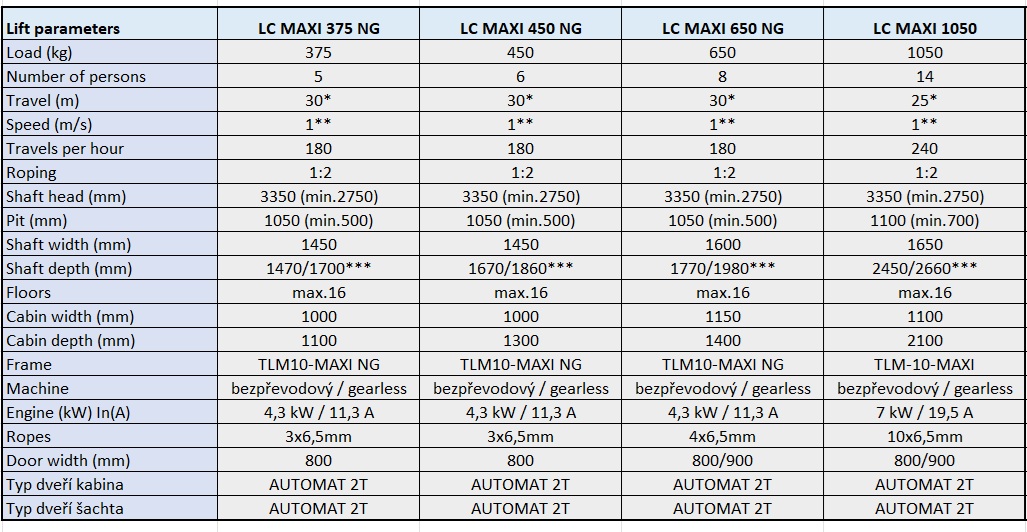 LC Maxi NG (New Generation) - Lift without a machine room