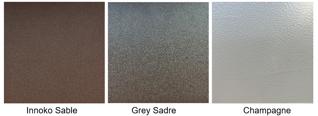 - Grey Sadre (fine textured matte) – subtle texture, matte finish